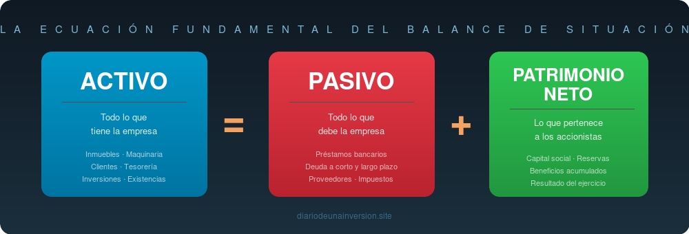 Así de simple. Todo lo que tiene la empresa (activo) está financiado de alguna manera: o con deuda (pasivo) o con dinero propio (patrimonio neto). Si entiendes esto, ya entiendes la estructura del balance.